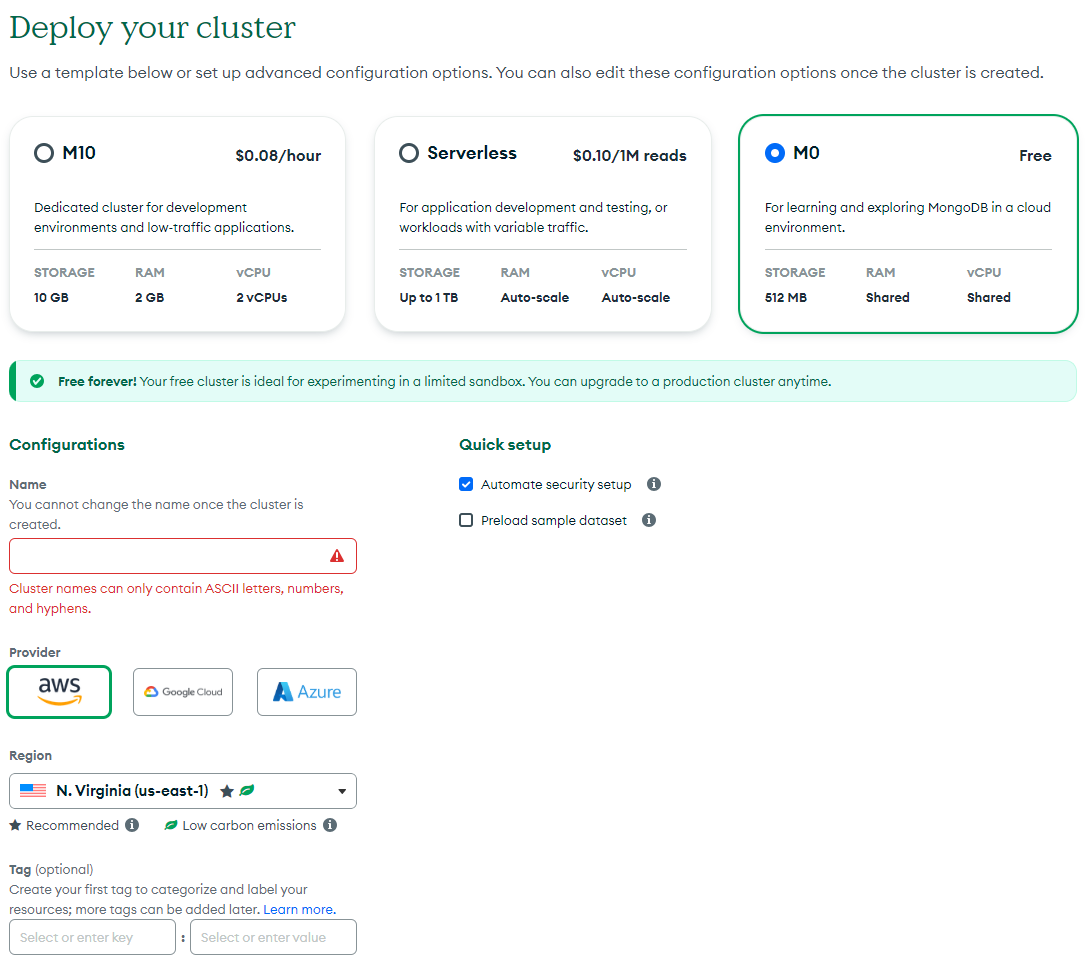 우선 database는 MongoDB를 사용할 것이다. MongoDB Atlas에서 500MB까지는 무료로 지원해주기 때문이다