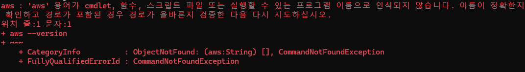 aws cli가 설치되었는지 확인하기 위해 aws --version을 입력해보면