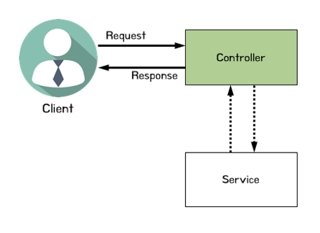 어플리케이션의 가장 바깥 부분, 요청/응답을 처리. 클라이언트의 요청을 처리 한 후 서버에서 처리된 결과를 반환