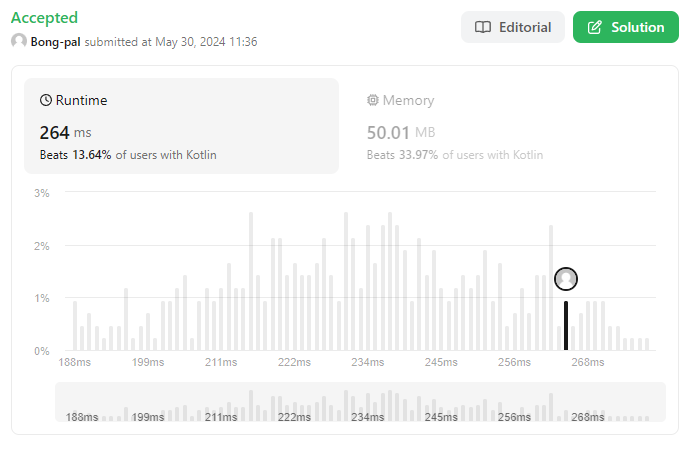 입력된 값을 뒤집기만 하며 되기 때문에 reverse() 함수를 사용해 변경하면 간단한 문제지만, 해당 방식으로 풀었을 경우 Runtime이 아무리 빨라도 250ms이하로 내려가긴 힘들다.