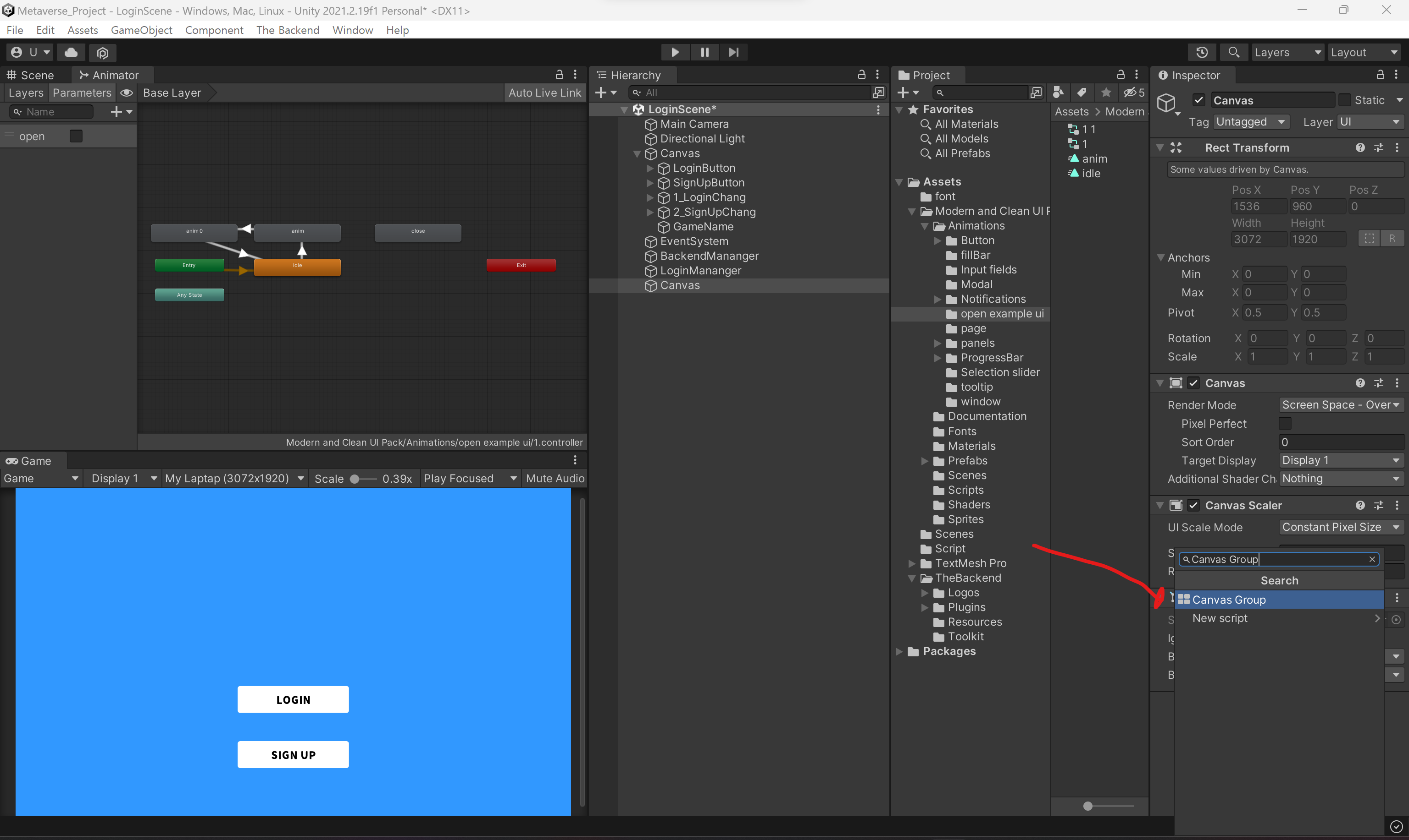 Canvas Group은 Canvas를 생성할 때 자동으로 생성되지 않은 컴포넌트이기 때문에 따로 Inspection에서 추가로 사용해줘야된다.