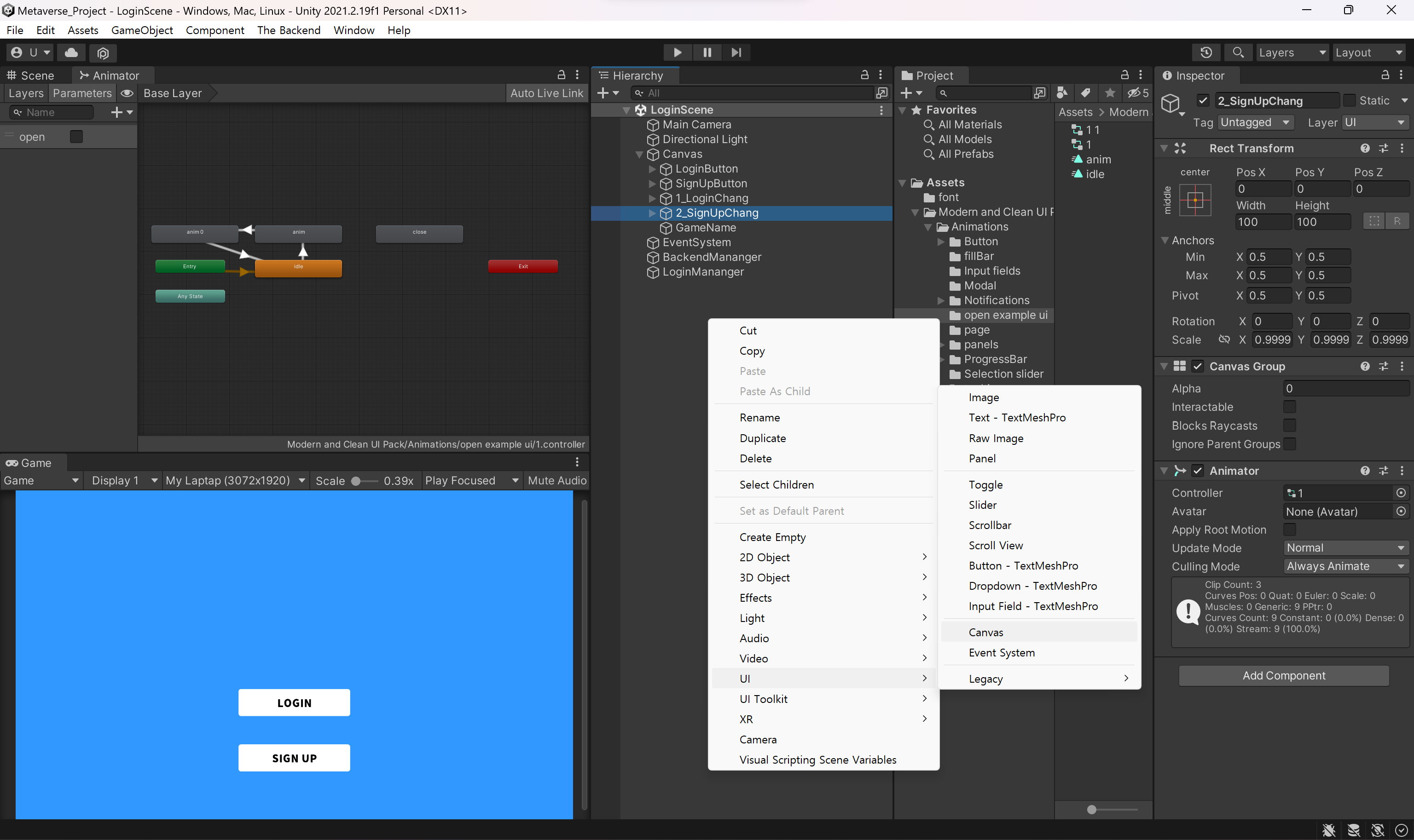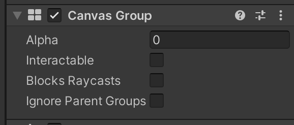 유니티에서 UI 엘리먼트들은 Canvas 객체 하위에 존재하는데 이 엘리먼트들에 Canvas Group 컴포넌트를 추가하여 그룹화 되어있는 자식 요소의 알파와 레이 캐스팅 상태를 제어할 수 있는 것이 CanvasGroup 컴포넌트 이다.
