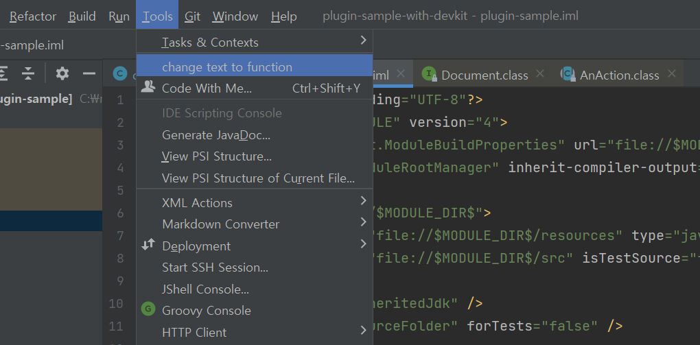 어찌저찌 test action 만들어서 build jar 생성 install plugin from disk