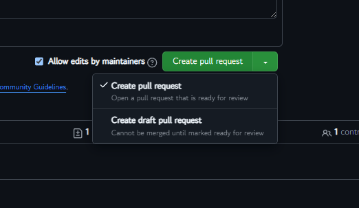 그럼 나머지 하나 Create draft pull request는 뭘까.
