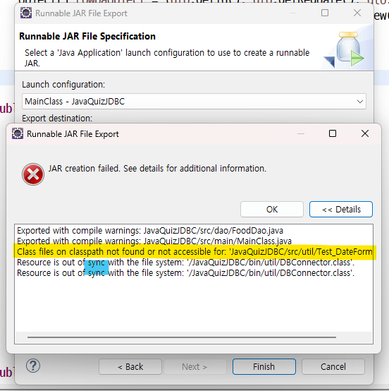 Eclipse 에서 만든 Java 프로젝트를 .jar 파일로 export 하려고 하는데 발생