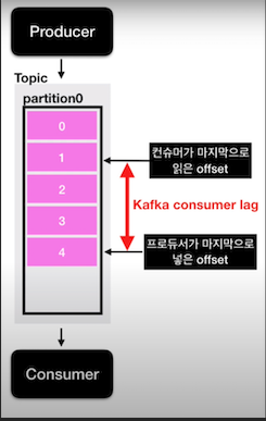 - Consumer lag은 "Producer가 마지막으로 넣은 offset"과 "컨슈머가 마지막으로 읽은 Offset"의 차이이다.