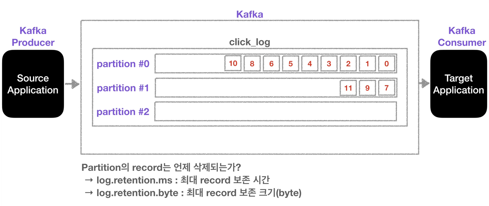 - 파티션의 데이터는 "레코드가 저장되는 최대시간, 최대크기"를 지정할 수 있다.