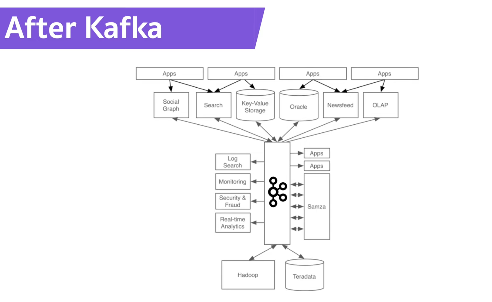 - 이러한 복잡함들을 해결하기 위해서, LinkedIn애서 개발한 파이프라인, 스트리밍 분석, 데이터 통합 및 미션 크리티컬 애플리케이션을 위해 설계된 "고성능 분산 이벤트 스트리밍 플랫폼"이다.