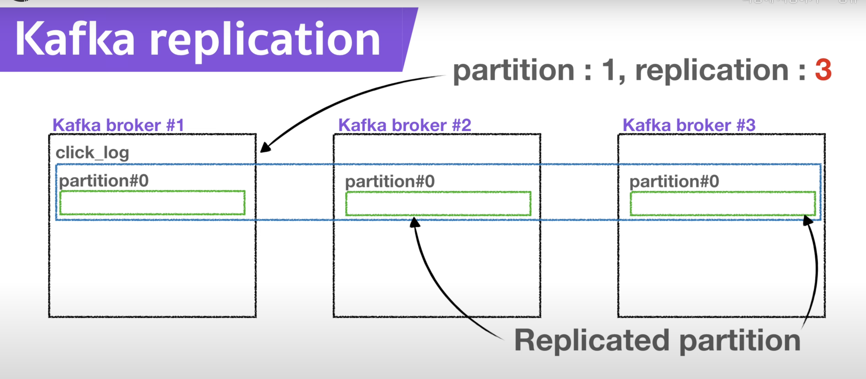 - "replication: 1" 이라면, 파티션은 "원본 1개 복제본 2개"가 존재한다.