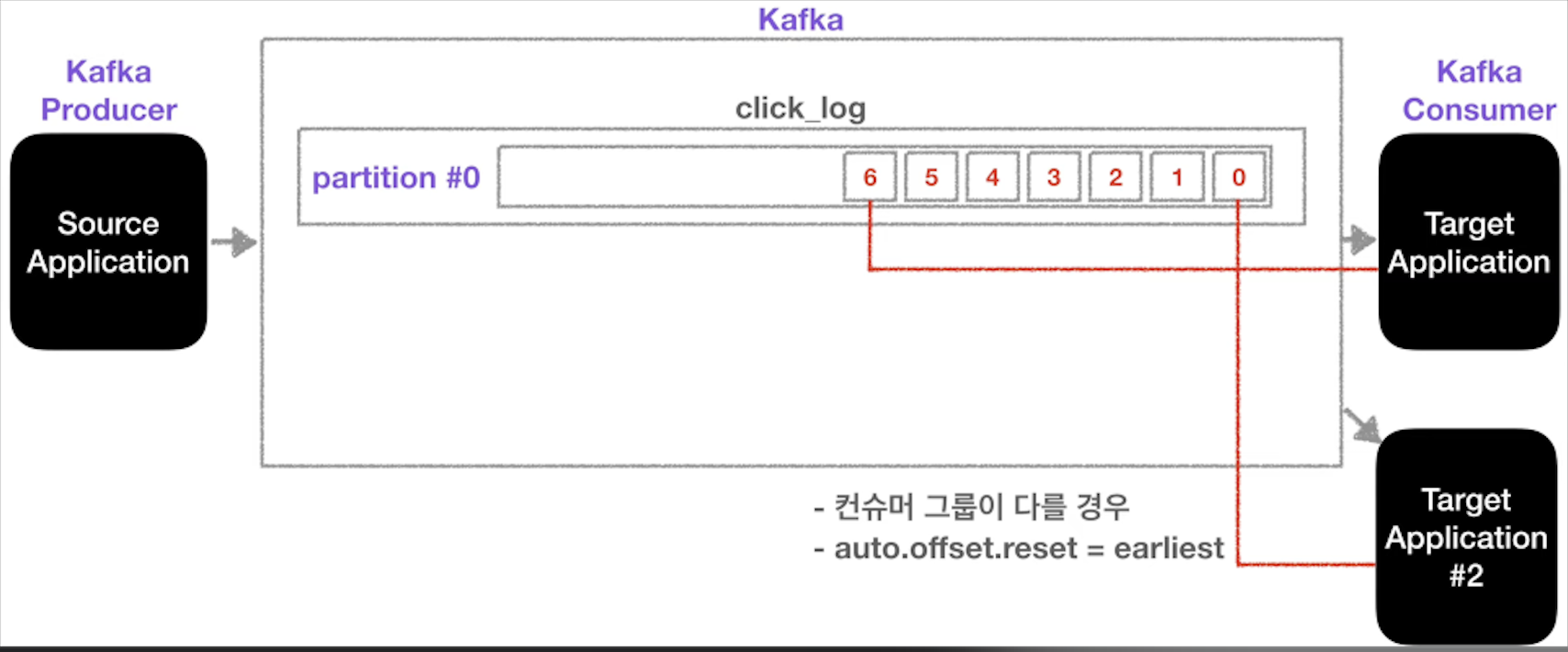 - 컨슈머끼리 "컨슈머 그룹이 다르고", "auto.offset.reset=earliest"라는 설정이 존재해야 한다.