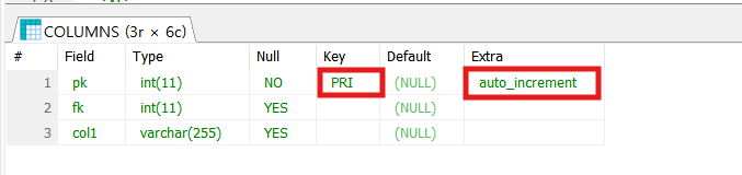 pk INT AUTO_INCREMENT PRIMARY KEY,