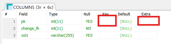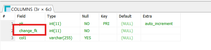 ALTER TABLE tb2 CHANGE COLUMN fk change_fk INT NOT NULL;