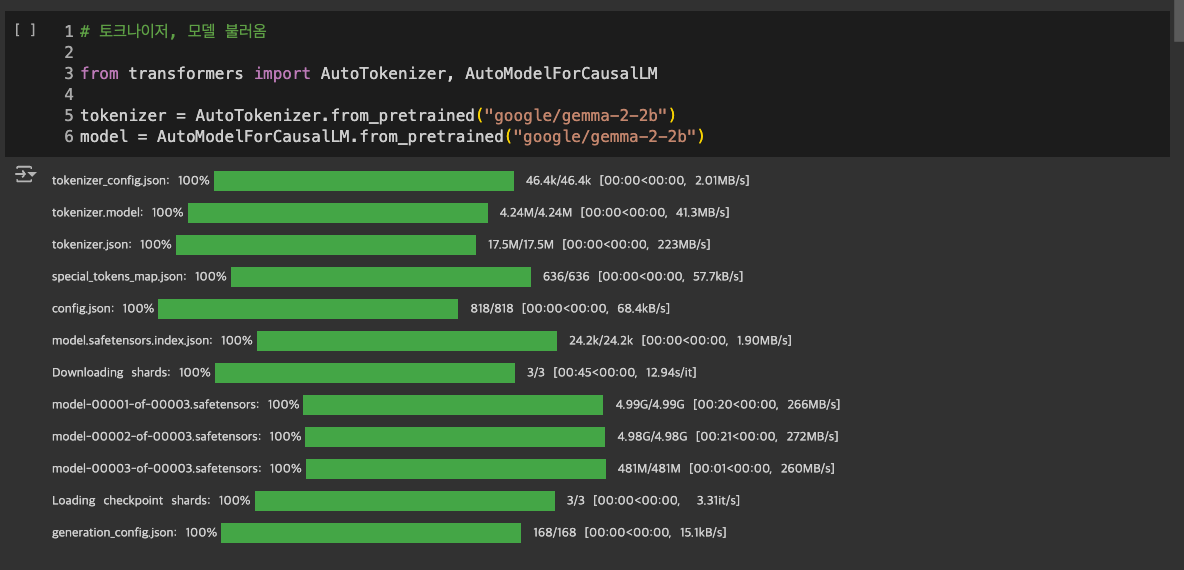 gemma2-2b 모델을 불러오려면 huggingface 에서 토큰을 발급받아야 한다.