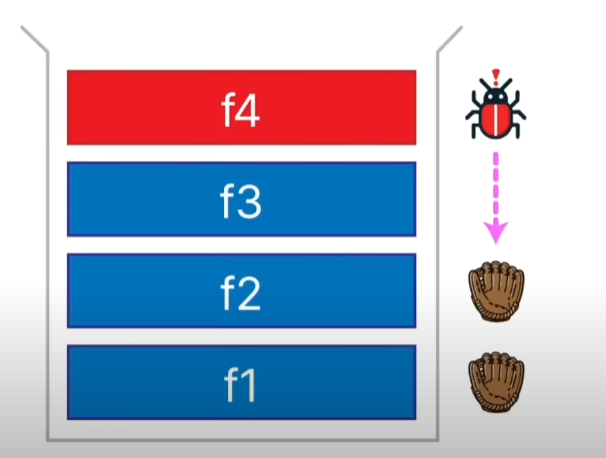 위의 사진에서는 F4에서 발생한 에러가 상위 함수로 전파되고 있고 이를 상위 함수 F2에서 에러 포착을 하는 것을 나타내고 있다.