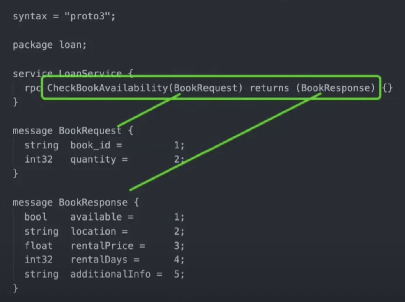지정되어 있는 필드를 각각 매개변수와 반환 값으로 사용하도록 기능을 지정할 수도 있다. 이것이 서버에서 구현되고 클라이언트에서 호출하는 함수가 된다.