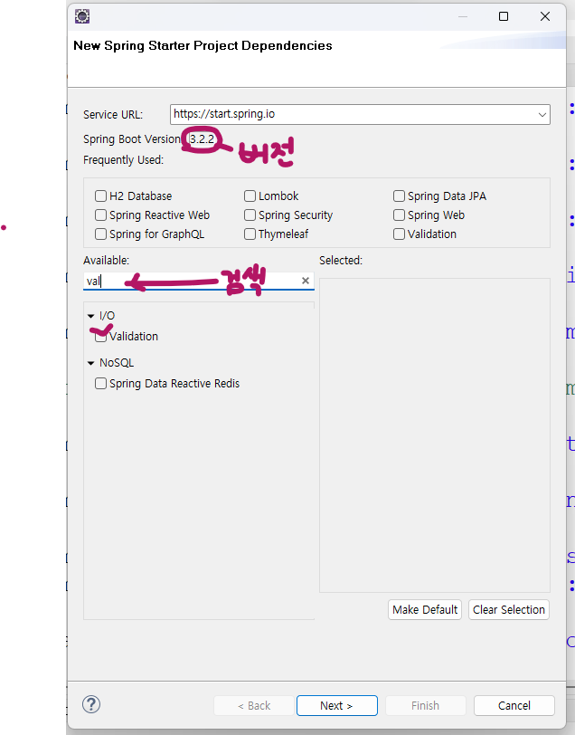 위 이미지는 새 스프링부트 프로젝트를 이클립스 툴에서 추가하고 있는 상태인데 이창에서 기본셋팅 한 후 next버튼을 클릭하면 위의 추가페이지가 뜨게 되며 사용방법은 동일하여 프로젝트를 새로 생성할때도 기본추가가 가능하다.