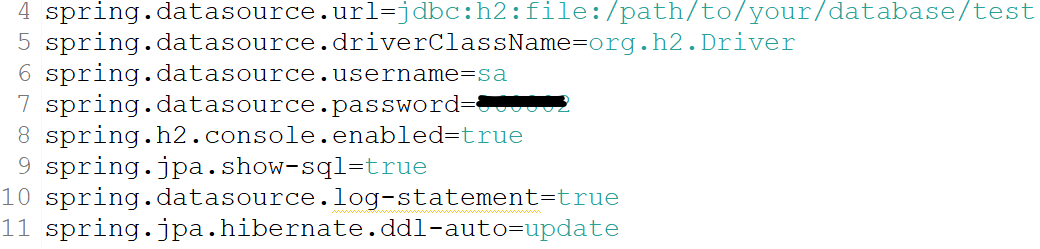 ▶ 필요한 값을 추가해준다. 기본적으로 드라이버 경로나 암호값을 설정하고 11번은 값이 테이블에 자동으로 업데이트 되도록하는 값을 입력한 것이다.
