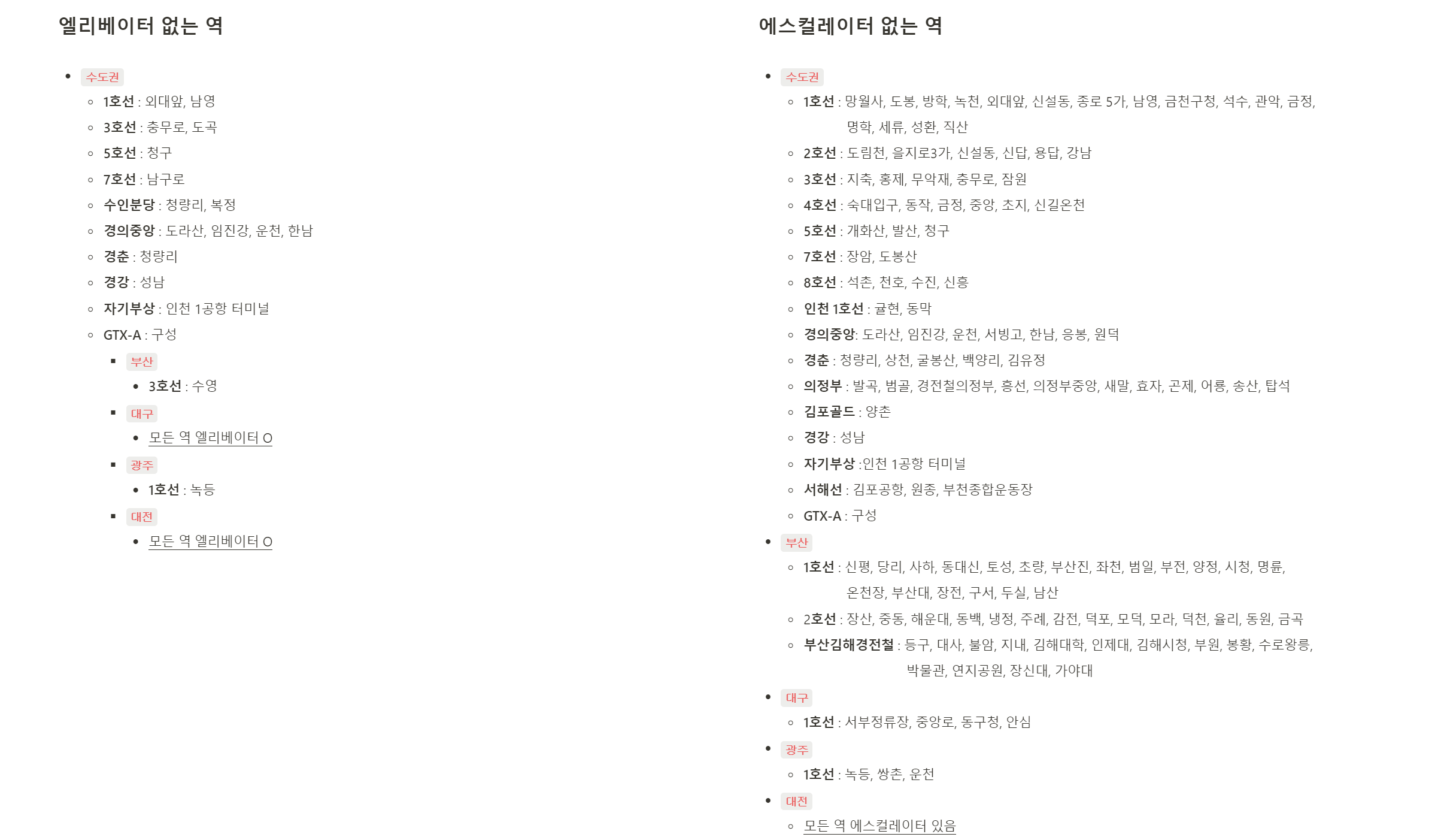 - 지하철 기본 정보, 엘리베이터, 에스커레이터, 휠체어 리프트
