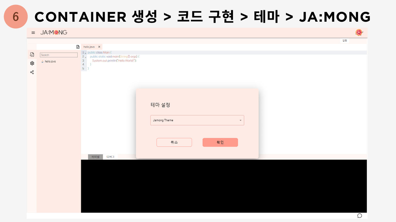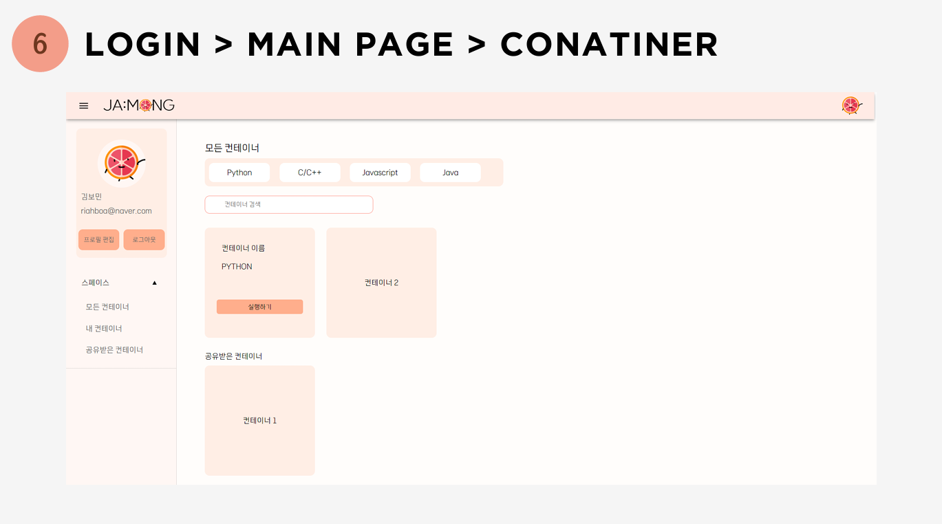 자:몽 IDE 로그인 후, 메인 페이지 화면이다. 좌측 프로필 편집이 가능하다.