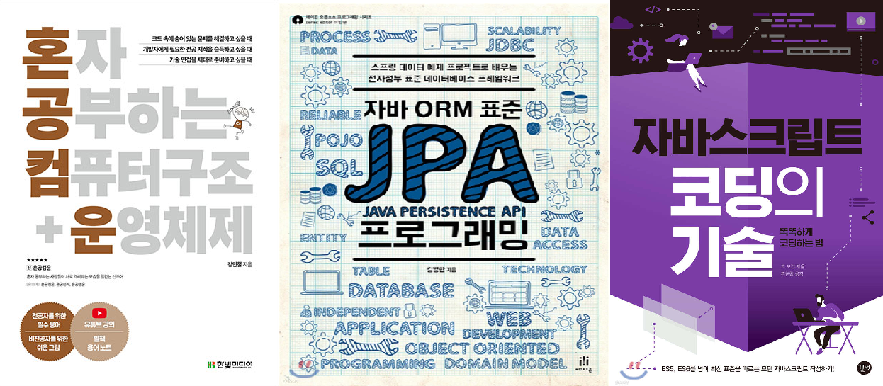 CS 책 1권, 프론트엔드 책 1권(2권 중 택1), 백엔드 책 1권(2권 중 택1)이다.