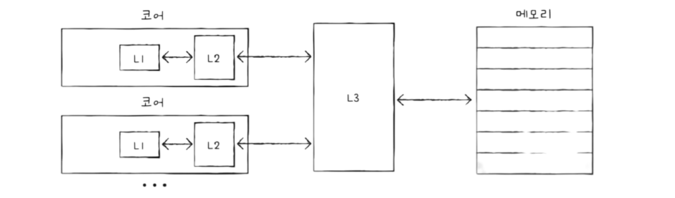일반적으로 L1과 L2는 코어 내부에, L3는 코어 외부에 존재한다.