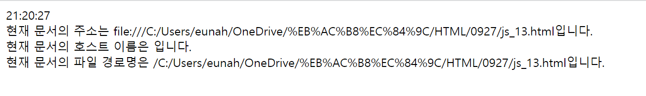 document.write("<br>현재 문서의 파일 경로명은 " + location.pathname + "입니다.");