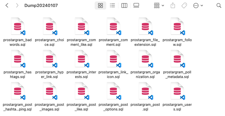 성공적으로 덤프를 하였다면, 다음과 같은 형태로 파일이 제공된다.