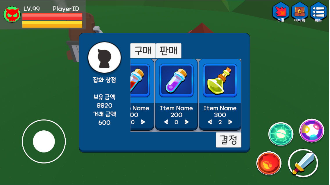 위 사진들은 아이템 샵에서 아이템을 구매하고 판매하는 과정이다.