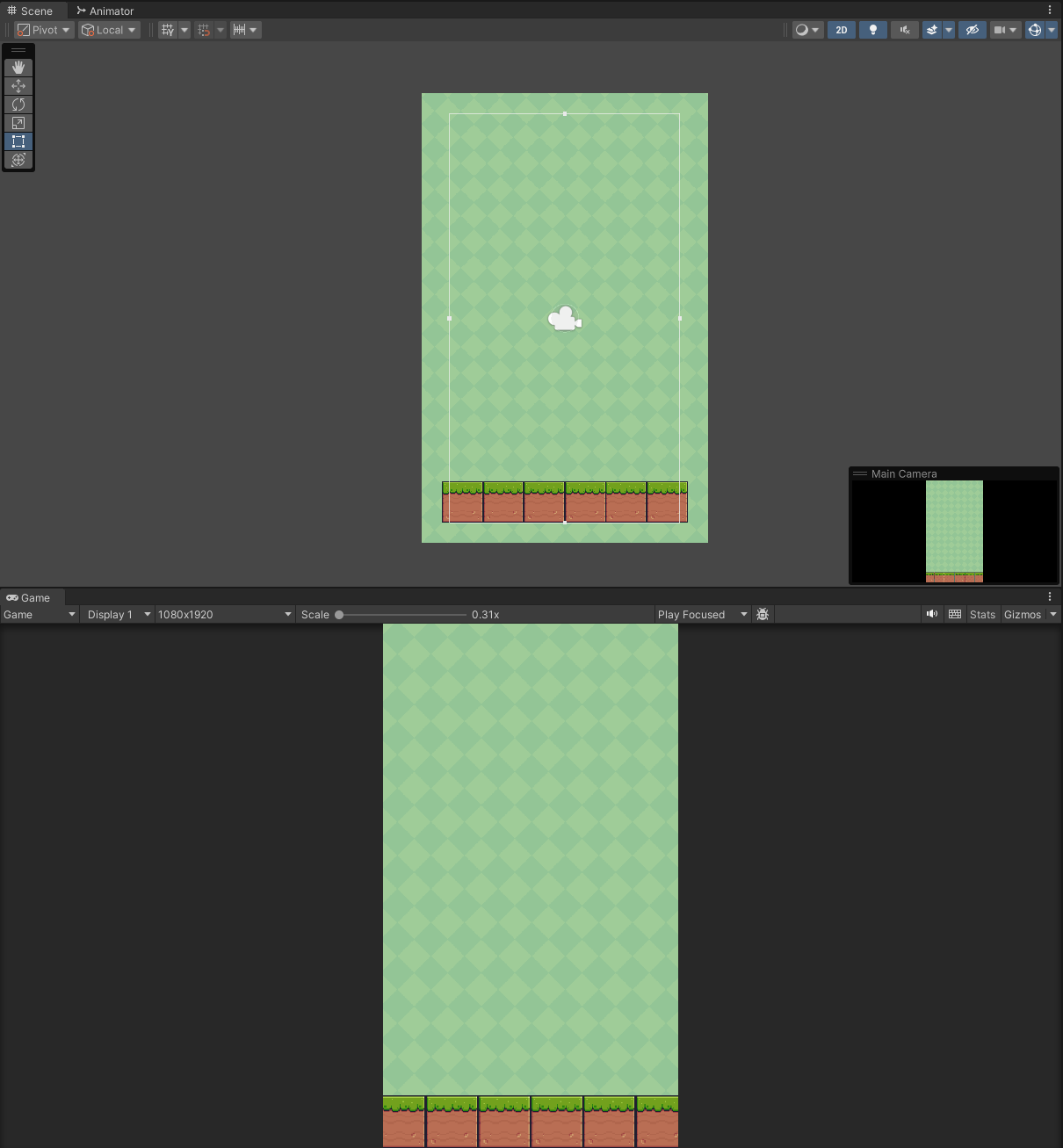 지금까지 배웠던 것들을 정리해서 간단한 똥피하기 게임을 만들어본다. 먼저 Game 뷰에서 화면의 크기를 1080x1920으로 바꿔준다.