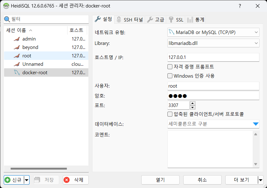 컨테이너 삭제하면 HeidiSQL 에서 연결 끊김