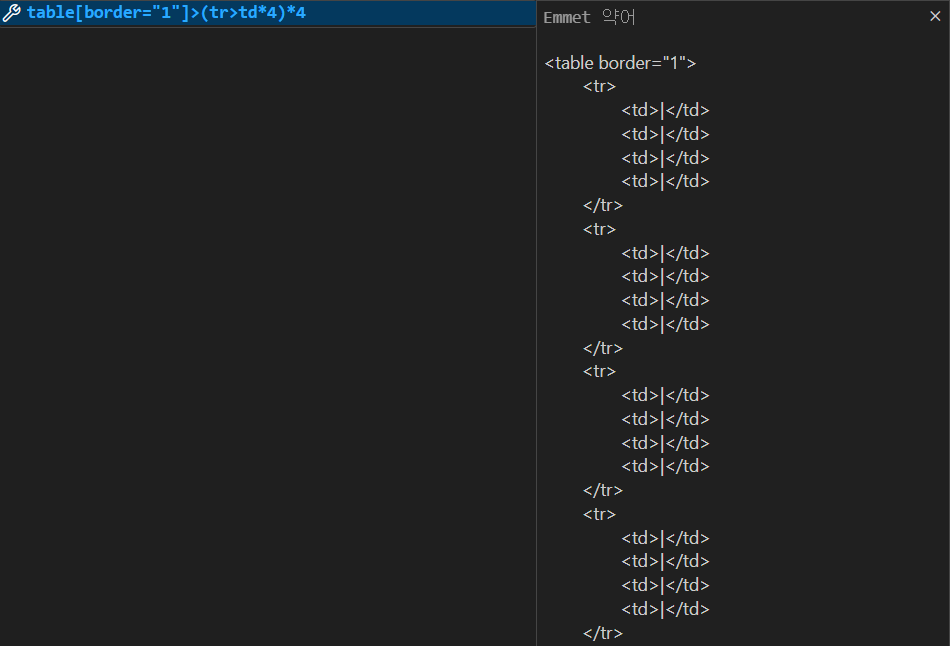 table[border="1"]>(tr>td*4)*4