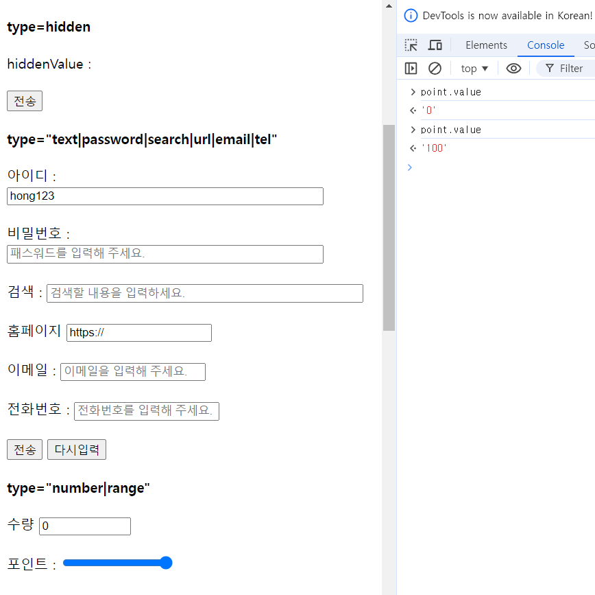 → 바 움직이고 콘솔에 point.value 하면 값 확인 가능 !