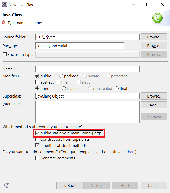 → 만들 때 public 체크하면 class 만들어줌 !