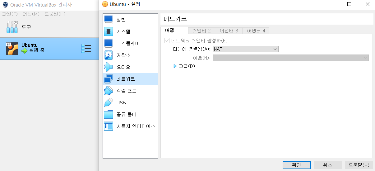 - virtualBox에서 Ubuntu 우클릭 > 설정