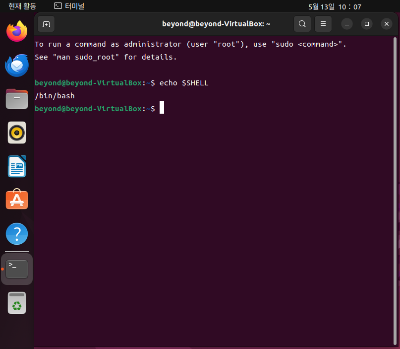 * home 디렉터리로 갈 때 cd ~ 만 쳐도 됨 !