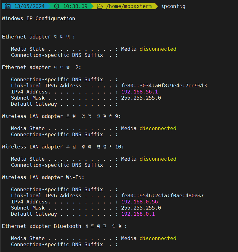 Wireless LAN adapter Wi-Fi, 랜선으로 연결했다면 이더넷으로 확인