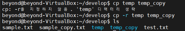 - temp_copy를 temp에 복사(temp 안에 temp_copy가 생성)