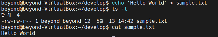 → echo로 내용이 있는 파일을 생성할 수 있음
