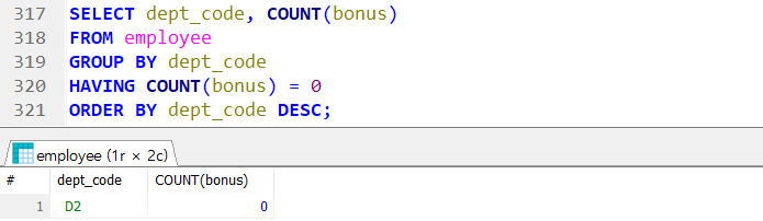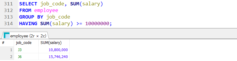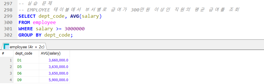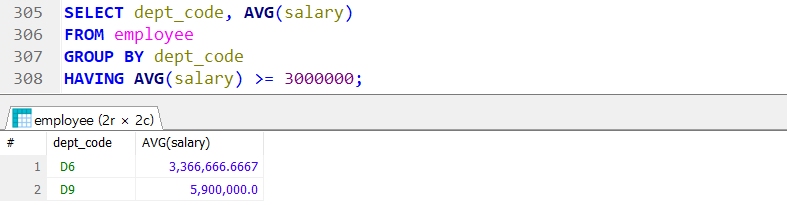 → HAVING 절은 반드시 GROUP BY 절 다음에 작성 !