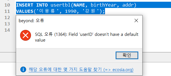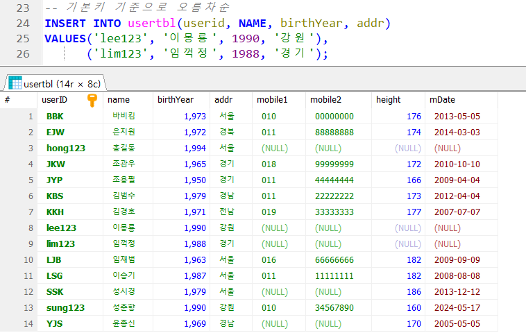 → ⛧ 값을 입력하지 않으면 NULL 로 채움