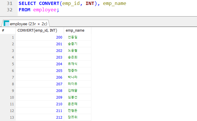 문자 데이터를 숫자 데이터로 형 변환