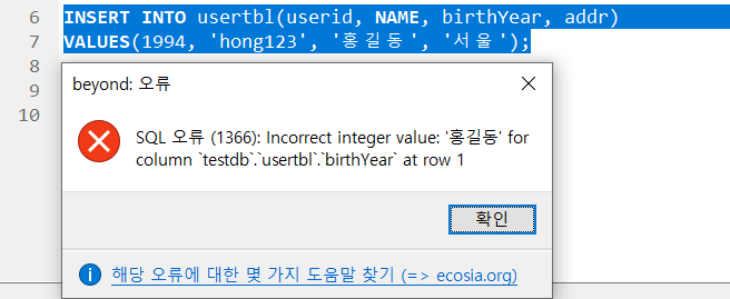 모든 데이터 타입 변환이 가능한 것은 아님(오류 상황)