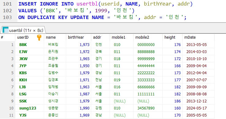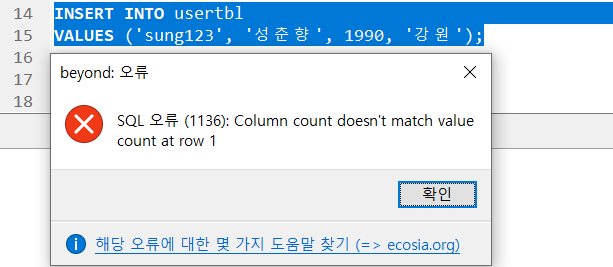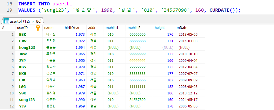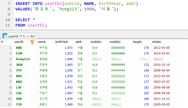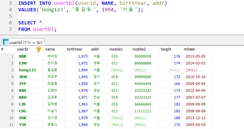 테이블에 데이터를 삽입하는 구문