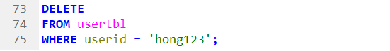 ex) userid가 hong123인 회원 삭제