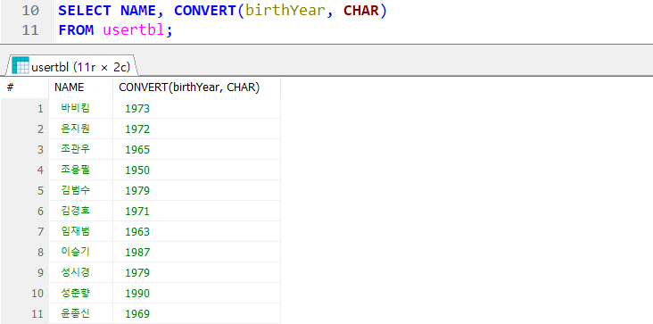 숫자 데이터를 문자 데이터로 형 변환