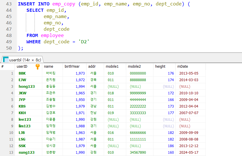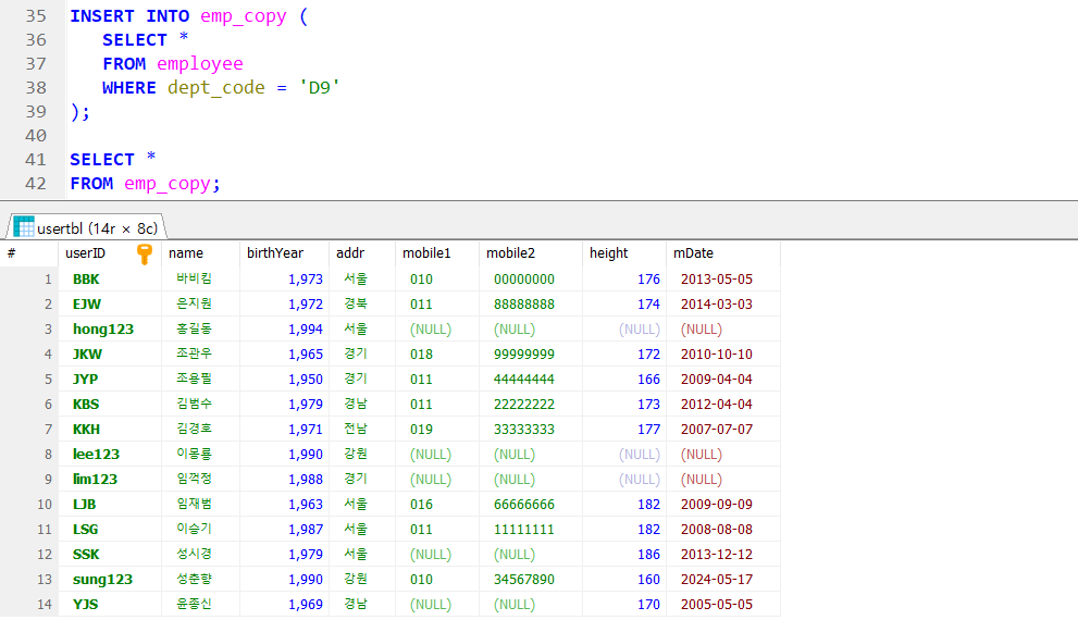 → SELECT 결과 테이블 삽입