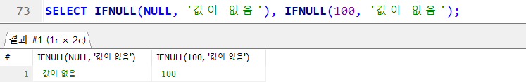 IFNULL(수식 1, 수식2) = NVL