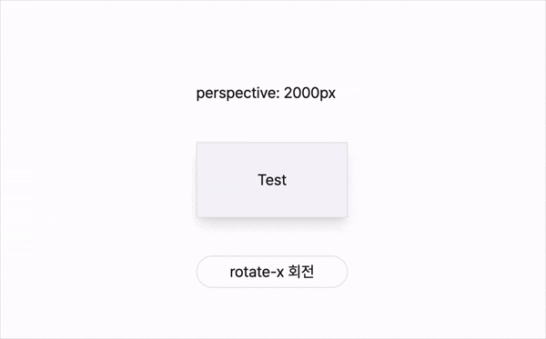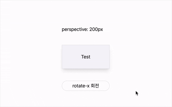 px 등) 으로 설정아래 동일한 애니메이션에서 perspective 값만 조절했을 때의 차이를 볼 수 있다. 200px 일 때는 극적으로 회전하는 반면 2000px 일 때는 거의 원근감이 느껴지지 않는다.