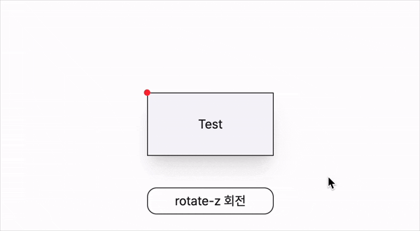 transform-origin 값이 달라짐에 따라 rotateZ() 는 다음과 같이 회전된다. 편의를 위해 transform origin 값은 빨간색 점으로 표시했다.