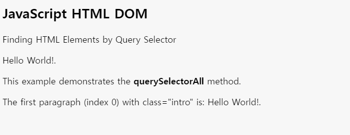 <p class="intro">This example demonstrates the <b>querySelectorAll</b> method.</p>
